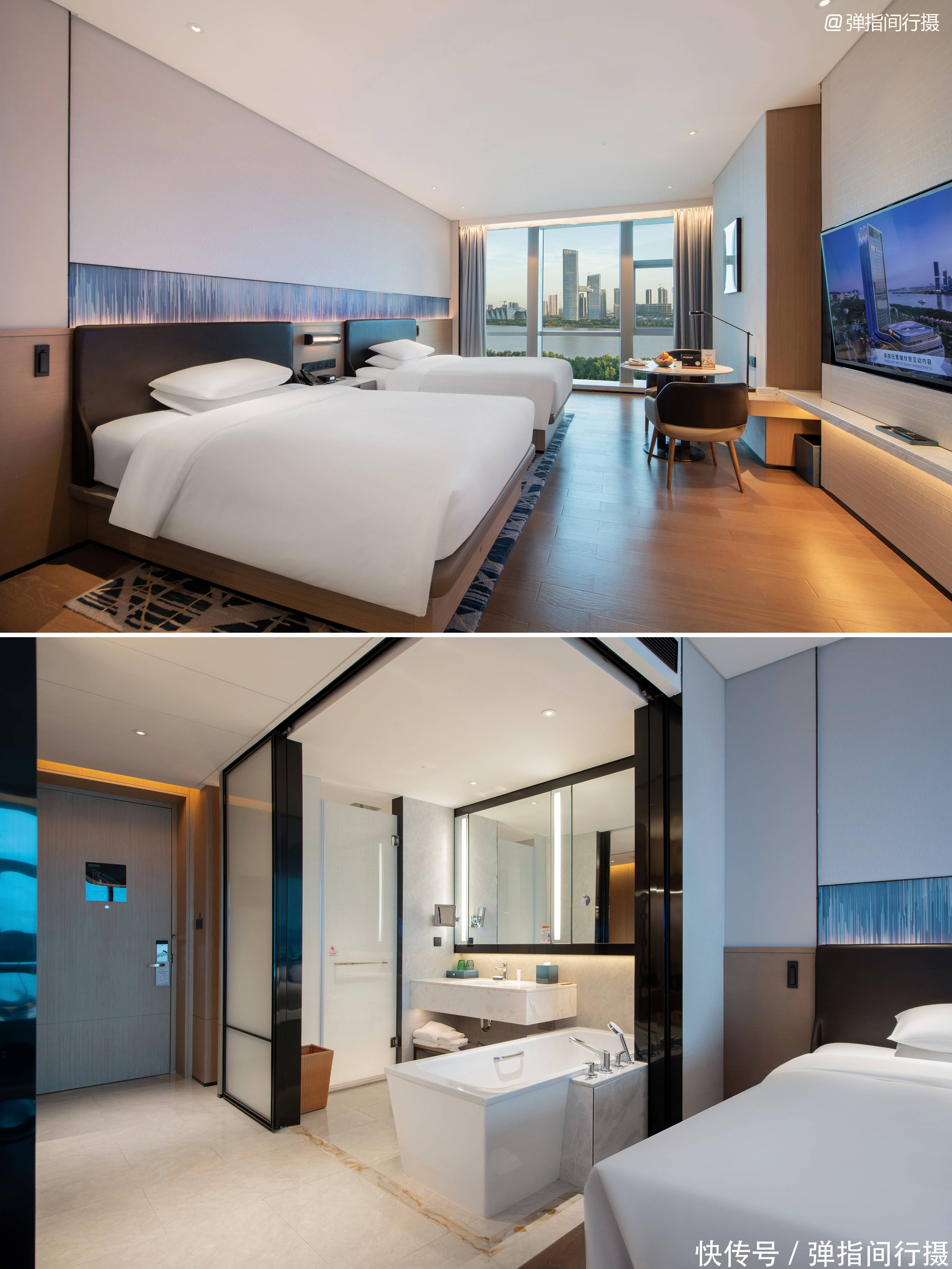 酒店客房格调现代雅致好牛配资,时尚精致的设计融入中式韵味。最令人惊喜的是整面墙的落地玻璃,将蕉门河风光完整呈现。我入住的高层客房视野极佳,清早可见晨跑者在河滨绿道锻炼,傍晚能欣赏城市天际线的日暮美景。